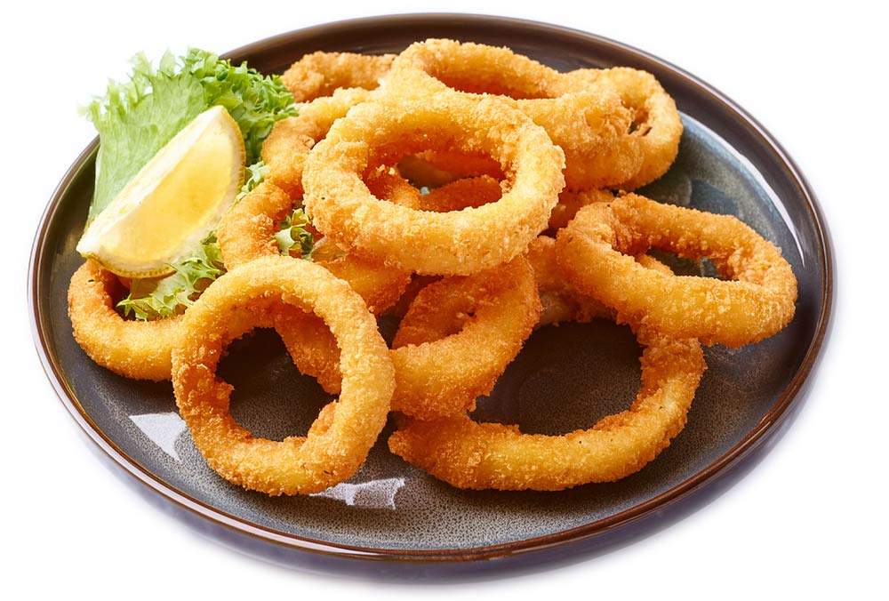 Heerlijk gebakken inktvisringen in beslag uit eigen keuken. Prijs is per 100 gram.